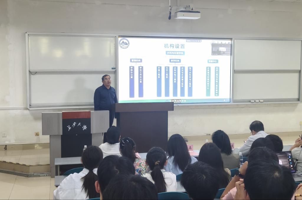 院长白波致欢迎辞。他对292名本科生、208名研究生的到来表示热烈欢迎,并简要回顾了水利与环境学院70余年的办学历程与辉煌成就,希望新生传承初心、勇担使命,践行专业担当,与祖国同向同行,为中国式现代化建设贡献青春力量。