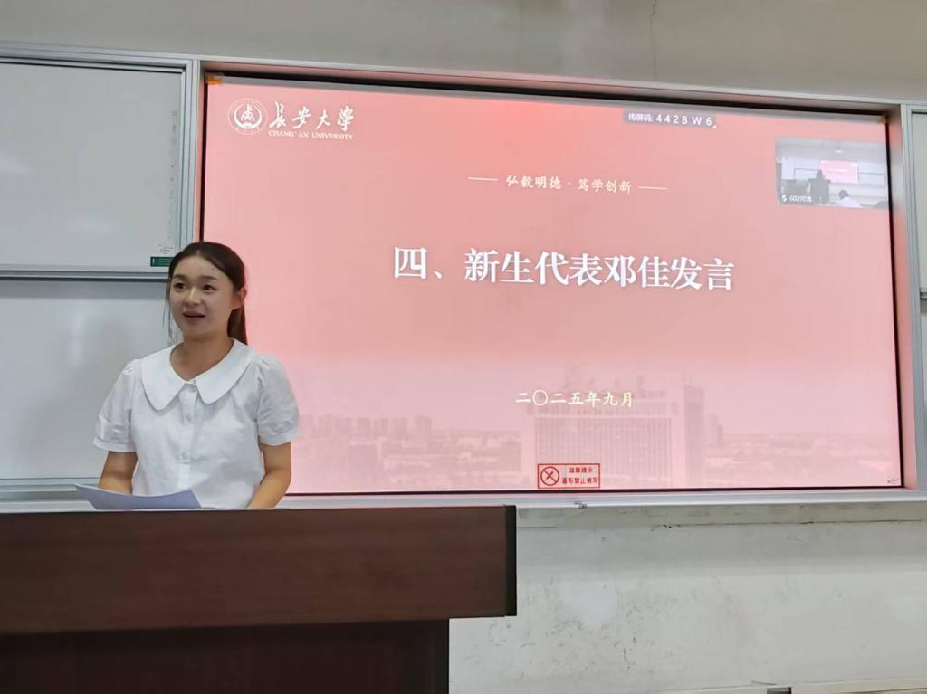 新生代表邓佳分享自身从“小镇做题家”到对大学意义的新认知,呼吁新生勇敢试错、珍惜时代机遇,以饱满的热情、踏实的态度开启大学学习生涯。在校生代表孙新雨结合自身经历,从适应大学生活、合理规划时间、积极参与实践活动等方面提出建议,希望学弟学妹们深耕专业知识,实现自我价值,为学院发展增添新生力量。